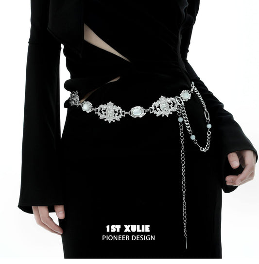 "Bastet" Platinum Plated Segmented Waist Chain, Statement Body Chain