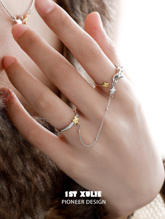 "CAT'S GAZE" 925 Sterling Silver Statement Chain Cat Ring