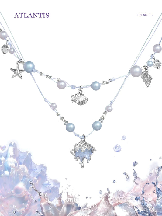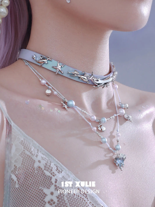 "ATLANTIS" Platinum Plated Coastal Double Layer Conch Choker Necklace