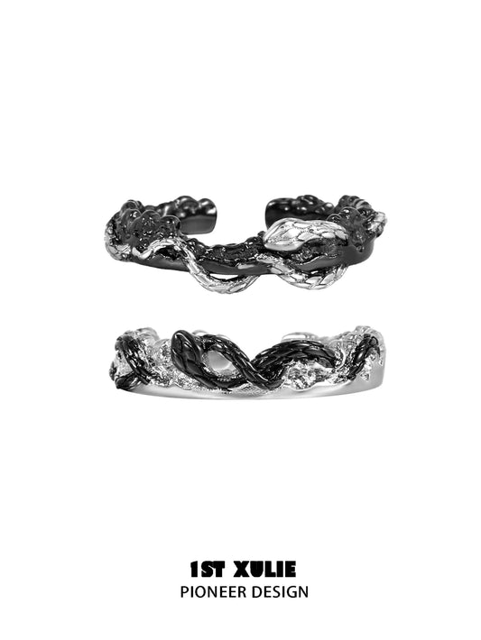 "Snake Bite" 925 Sterling Silver Minimalist Serpent Adjustable Couple's Rings, Symbolic Promise Jewelry