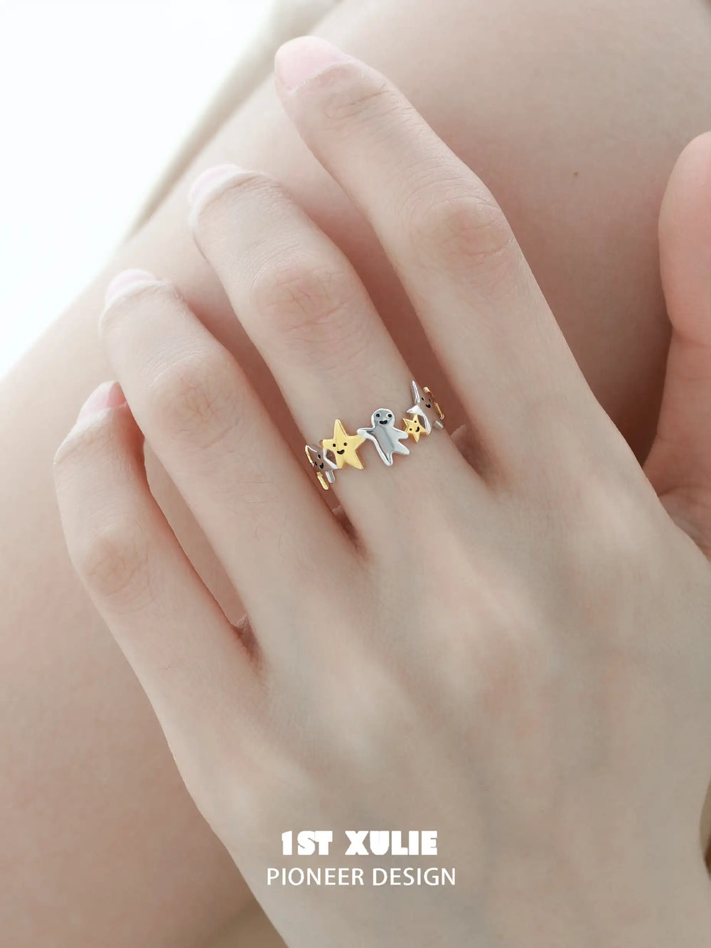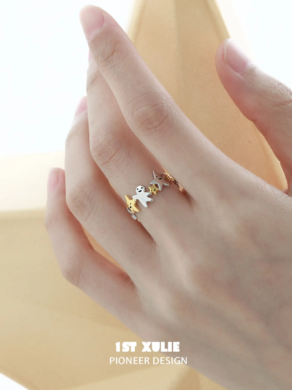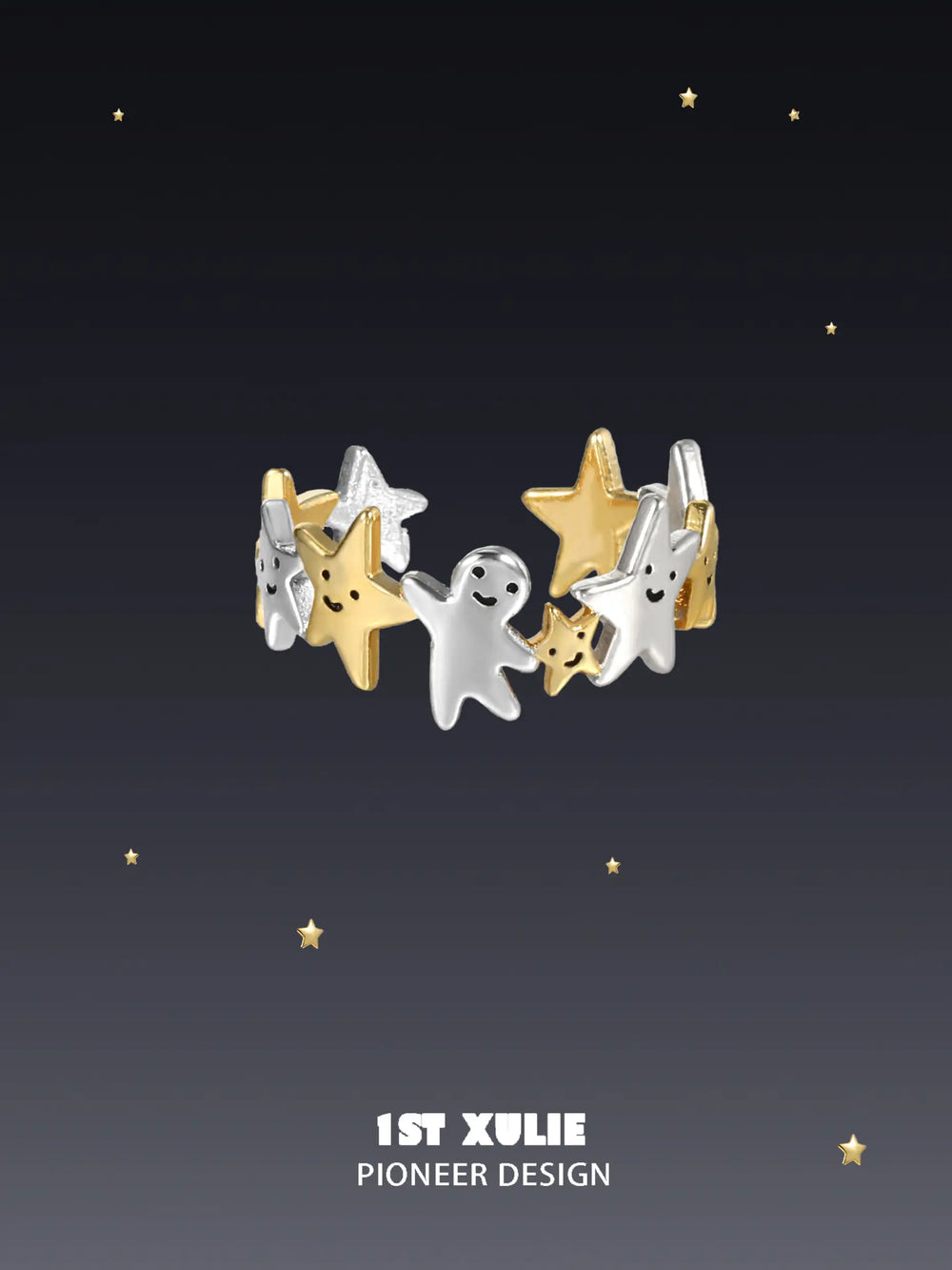 ユニークなデザイン: 星のモチーフと金メッキのアクセントが特徴のこのリングは、天体のインスピレーションとモダンな優雅さを融合しており、カジュアルとフォーマルの両方の場面で使える多用途で意味のあるアクセサリーになっています。