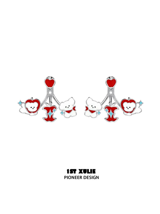 キューティーズ アップルランド 子猫&子犬 アップルコア 18K プラチナメッキ スタッドピアス™ - 赤い子犬のイヤリング