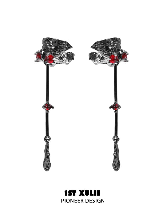 ルシファー レッドクリスタル 18K ブラックゴールドメッキ イヤーフック ニードルピアスイヤリング™