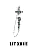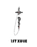 1ST XULIE "Snake Bite" Statement Sword Chain Dangle Earrings in Platinum Plate - Detail Shot