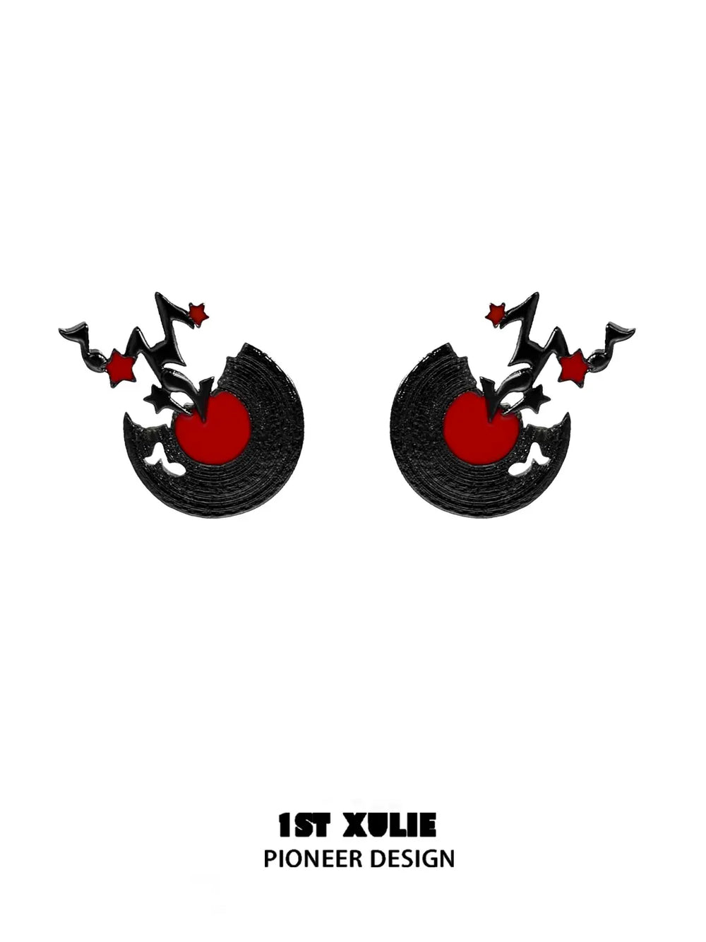 • Artisanal Craftsmanship: Each earring features a unique black vinyl texture, meticulously created with a handmade enamel drip process, giving it an authentic, grooved appearance.